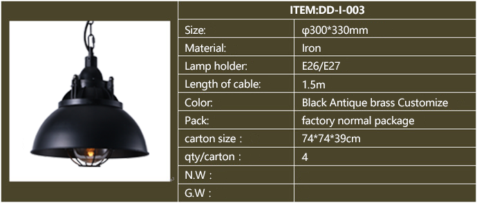 Product description: American style industrial iron pendants,for restaurants, cafeteria, bars and other personalized space
