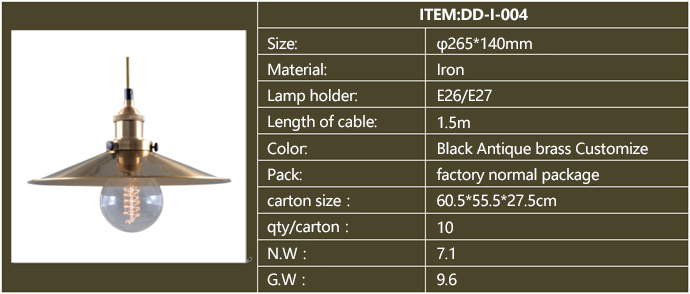 Product description: American style industrial iron pendants,for restaurants, cafeteria, bars and other personalized space