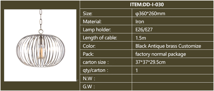 Product description: American style industrial iron pendants,for restaurants, cafeteria, bars and other personalized space