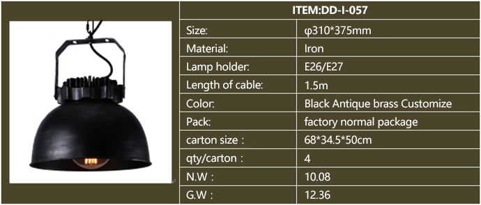 Product description: American style industrial iron pendants,for restaurants, cafeteria, bars and other personalized space