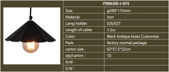 Product description: American style industrial iron pendants,for restaurants, cafeteria, bars and other personalized space