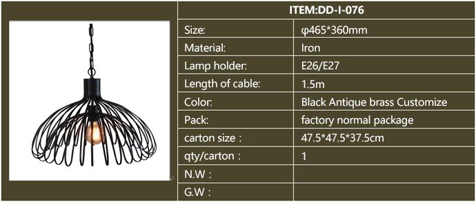 Product description: American style industrial iron pendants,for restaurants, cafeteria, bars and other personalized space
