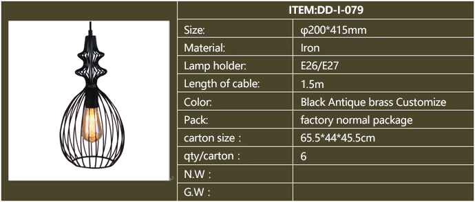 Product description: American style industrial iron pendants,for restaurants, cafeteria, bars and other personalized space