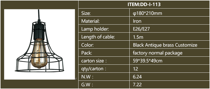 Product description: American style industrial iron pendants,for restaurants, cafeteria, bars and other personalized space