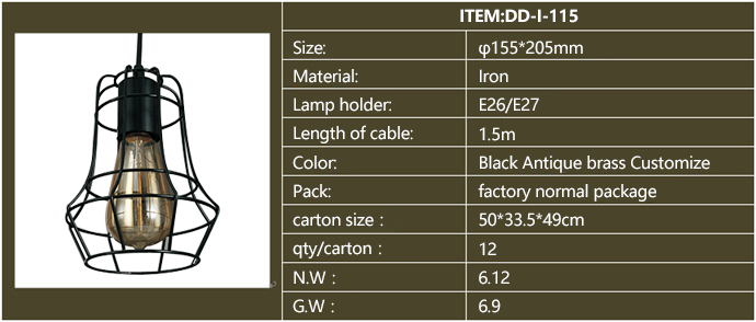 Product description: American style industrial iron pendants,for restaurants, cafeteria, bars and other personalized space