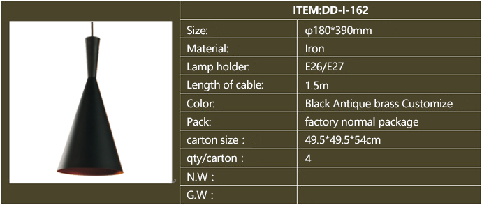 Product description: American style industrial iron pendants,for restaurants, cafeteria, bars and other personalized space
