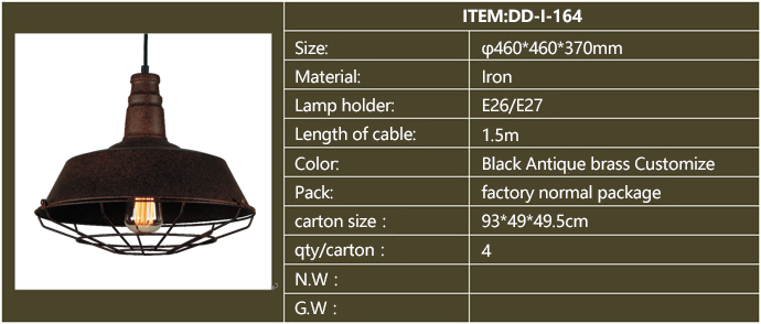 Product description: American style industrial iron pendants,for restaurants, cafeteria, bars and other personalized space