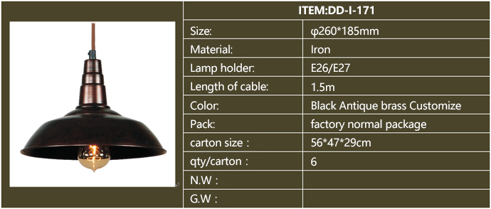 Product description: American style industrial iron pendants,for restaurants, cafeteria, bars and other personalized space