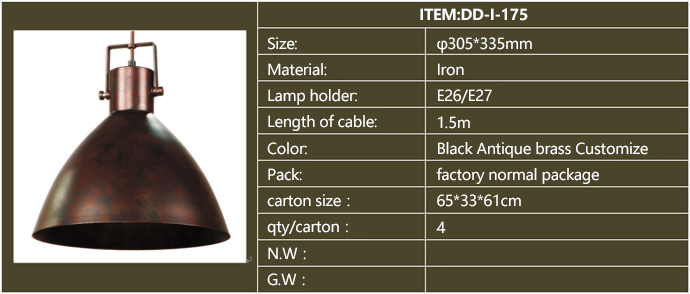 Product description: American style industrial iron pendants,for restaurants, cafeteria, bars and other personalized space