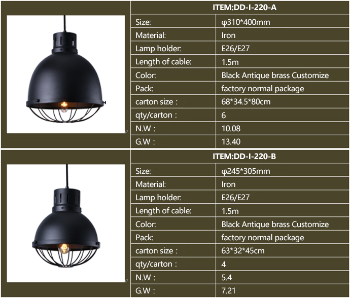 Product description: American style industrial iron pendants,for restaurants, cafeteria, bars and other personalized space