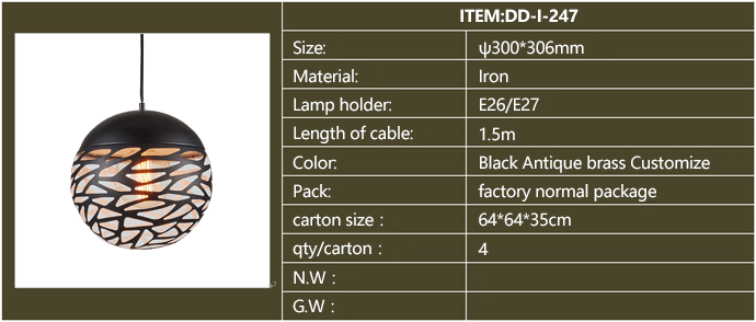 Product description: American style industrial iron pendants,for restaurants, cafeteria, bars and other personalized space