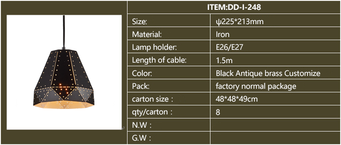 Product description: American style industrial iron pendants,for restaurants, cafeteria, bars and other personalized space