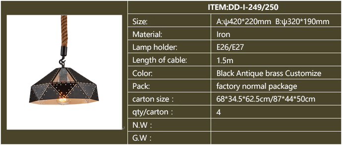 Product description: American style industrial iron pendants,for restaurants, cafeteria, bars and other personalized space